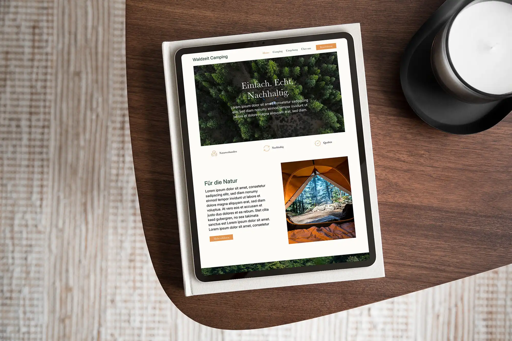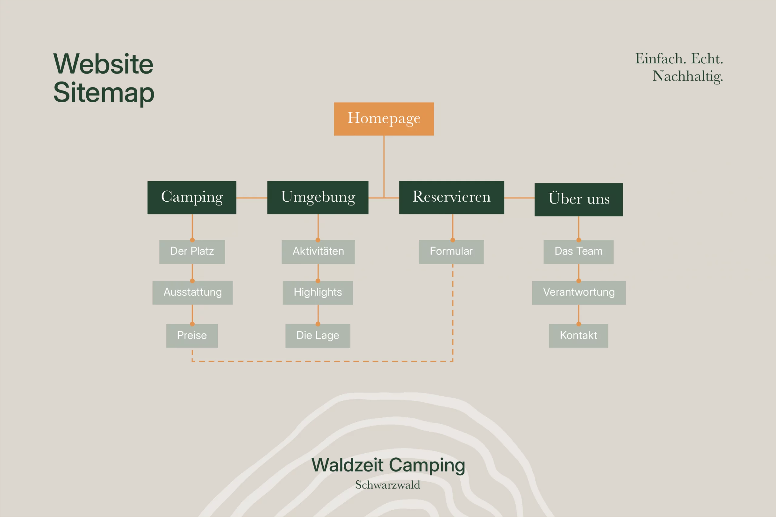 Entwicklung eines Brand Designs sowie Gestaltung und Umsetzung einer responsiven Website, welche die nachhaltigen Prinzipien des Campingplatzes leben und ein naturnahes Urlaubserlebnis widerspiegeln.